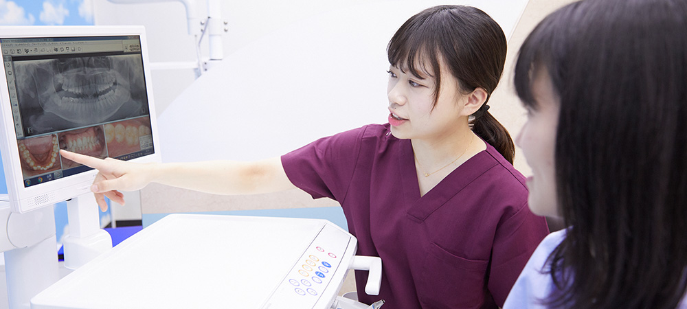まず歯並びの状態を確認させて頂きます。この状態から患者様のご要望の歯並びとするための治療に必要な期間や費用などについてご案内をさせて頂きます。初診では30~60分程度のお時間を頂きますが、ご不安に思われる点については遠慮なくご質問頂ければと思います。また未成年の方は保護者の方の同席が必要となりますので、あらかじめご了承下さい。